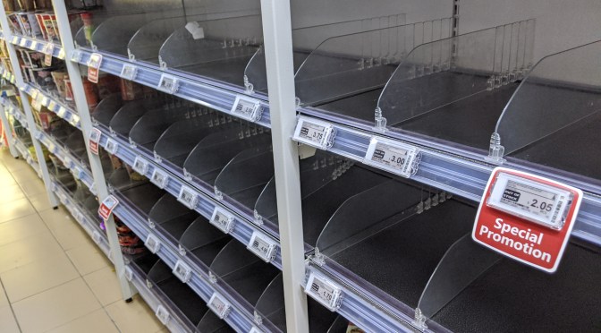 Panic buying is “real” after Singapore has raised Disease Outbreak Response System Condition (DORSCON) level to “Orange”